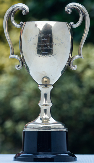 It is inscribed on the front: Wellesbourne & Walton Horticultural Society Tug of War Challenge Cup and on the reverse: Presented by Wellesbourne Football Supporters Club May 10th,1955.